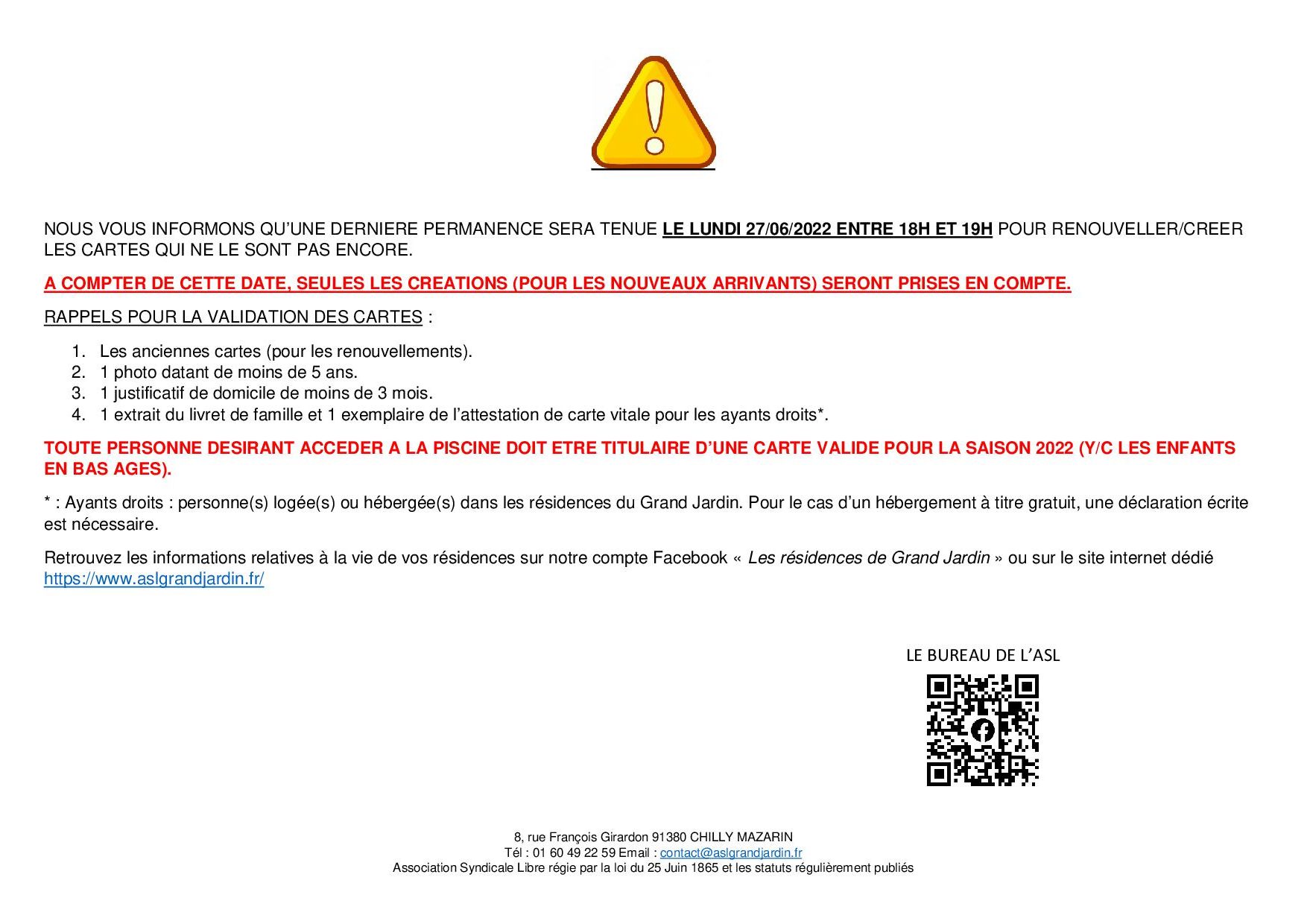 Venir avec sa carte ASL valide